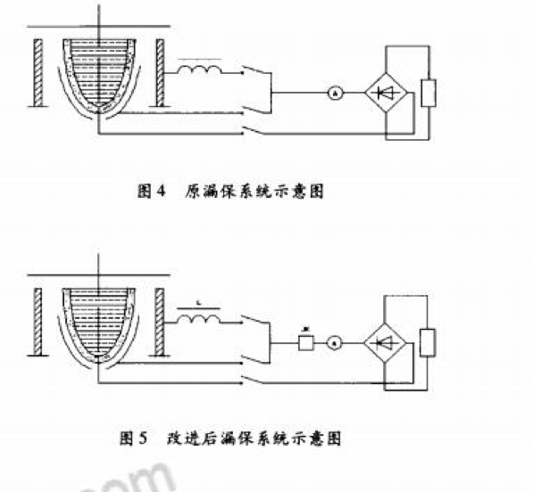 冶金機械有限公司投資兩千多萬(wàn)元打造的一條具有國內先進(jìn)水平的軋輥生產(chǎn)線(xiàn),其主體設備是3T、10T中頻電爐,整個(gè)熔煉過(guò)程采用全程控制圖形化操作界面。在運行過(guò)程中發(fā)現電爐在使用一定爐次以后,由于爐襯膨脹、疏松,鐵水極易穿透爐襯。為確保生產(chǎn)正常運行,提高爐體的使用壽命。對爐體提出改進(jìn)設想并對其進(jìn)行可行性分析,通過(guò)應用對漏保系統采取改進(jìn)措施。