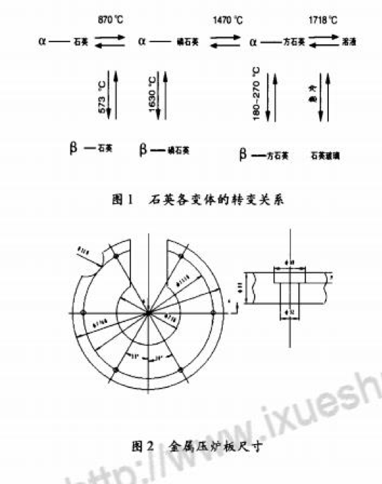目前國內中頻爐用于熔煉鑄鐵的普通爐襯材料使用的是SiO:石英砂。自然界的石英是低溫型的。開(kāi)始加熱時(shí),石英砂隨溫度升高而均勻膨脹。在573~C時(shí)發(fā)生同質(zhì)異晶轉變,低溫石英轉變成高溫目前國內中頻電爐用于熔煉鑄鐵的普通爐襯材料使用的是SiO:石英砂。石英后因晶體轉變而突然膨脹(這個(gè)轉變是可逆的)。高溫石英砂在870~C以上和有溶劑存在的條件下會(huì )轉變成磷石英,但轉變速度很慢。升高溫度可加快轉變,但即使在1250—1350℃高溫下亦需1小時(shí)左右才能完成。此時(shí)體積增大1.6倍,磷石英在1470℃以上變成方石英。方石英在1713℃以上融化,冷卻后變成石英玻璃,如圖1所示。